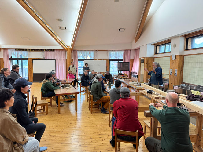 The Timber Framers Guild Fall Japan Tour was a carefully crafted journey through Japan's rich architectural and cultural heritage, with a particular focus on traditional woodcraft, joinery, and sustainable building practices. From November 7th to 21st, a group of timber framers, carpenters, and woodworking enthusiasts explored the country's finest examples of craftsmanship, both ancient and contemporary, immersing themselves in the unique world of Japanese architecture and timber construction. Tokyo: The Beginning of the Journey The adventure began in Tokyo, one of the most vibrant cities in the world, blending the ultra-modern with the traditional. The group was welcomed and oriented in this metropolis, where they set the tone for the tour by diving into the roots of Japan's architectural traditions. Kigumi Joinery Museum A highlight of the Tokyo leg was a visit to the Kigumi Joinery Museum. Kigumi is a traditional Japanese carpentry technique used in timber framing, involving intricate wooden joinery that requires no nails or metal fasteners. The museum offered a deep dive into this ancient craft, showcasing both historical examples and modern applications. Visitors had the opportunity to observe tools, techniques, and exhibits on the intricate ways timber was worked to build homes and temples in Japan. Asakusa Area The group also spent time in Asakusa, one of Tokyo’s oldest districts, known for its traditional atmosphere. Walking through its ancient streets, they explored the famous Senso-ji Temple and enjoyed the blend of old-world charm and lively shopping streets, where artisans still practice their craft. Onsen Experience After days of exploration, the group unwound at a serene onsen hotel. Soaking in the healing waters of a traditional Japanese hot spring was the perfect way to rejuvenate before moving on to the next leg of the journey. Odawara Castle and Kezuro-kai Annual Competition Next, the tour ventured to Odawara Castle, a historic fortress that showcases traditional Japanese construction techniques and timber-frame architecture. Here, the group learned about the defensive engineering and historical significance of Japanese castles. The tour continued with a visit to the Kezuro-kai Japan Annual Competition, a premier event celebrating the art of Japanese woodworking. Participants had the chance to see master carpenters and artisans demonstrate their incredible skills, competing in various disciplines such as joinery, traditional timber framing, and woodworking. Kyoto: The Heart of Traditional Japan After a journey through the modern and historical realms of Tokyo and its surroundings, the group traveled to Kyoto, the cultural heart of Japan. Chisetsu Temple Stay & Morning Chanting The group stayed at Chisetsu Temple, a tranquil location that provided an authentic, immersive experience. They had the rare opportunity to witness early morning chanting by the temple’s monks, an awe-inspiring ritual that resonated deeply with the participants and set the tone for their continued exploration of spiritual and architectural traditions. Path of Philosophy & Kawai Kanjiro's House The group wandered the Path of Philosophy, a scenic walk lined with temples and natural beauty. Along the way, they visited the house of Kawai Kanjiro, a renowned ceramic artist, where they learned about the intersection of traditional craftsmanship and art in Japanese culture. Tool Shops and Temples A series of visits to traditional tool shops introduced the group to the tools and materials used by master craftsmen in Japan. They also explored various temples and sites of architectural interest, gaining insight into the symbiosis of religion, craftsmanship, and design that defines Japan’s built heritage. Day Trip to Nara: The Ancient Capitals One of the most memorable excursions was a day trip to Nara, Japan’s first permanent capital. The group visited Todaiji Temple, home to one of the largest bronze statues of Buddha in the world, and the Horyu-ji Temple, a UNESCO World Heritage site known for its ancient wooden structures and architectural significance. Kobe: Takenaka Carpentry Museum The group then traveled to Kobe to visit the Takenaka Carpentry Museum, a stunning institution dedicated to the history and evolution of Japanese carpentry. Here, they learned about the tools, techniques, and materials used in traditional carpentry and timber framing, including how Japanese artisans approach precision and joinery. Miyama Village: Roof Thatching & Traditional Kominka Miyama Village, a picturesque area known for its thatched roof kominka (traditional farmhouses), offered a unique glimpse into sustainable building practices. Led by Haruo Nishio, a master thatcher, the group learned about the art of roof thatching—a time-honored practice that involves weaving straw to create weather-resistant roofs. They also spent two nights in Haruo Nishio’s beautifully restored kominka, gaining firsthand experience of life in these traditional homes. Sustainable Forestry Walk with Sachiko Takamuro A key part of the tour was an educational sustainable forestry walk with expert Sachiko Takamuro. This excursion emphasized Japan’s innovative practices in forest management, highlighting the balance between human activity and environmental conservation. The group learned about forest stewardship and how timber framing in Japan aligns with sustainability. Kumiko Master Shinichi Murayama A visit to Shinichi Murayama, a renowned kumiko artisan, provided an opportunity to see this intricate form of Japanese woodwork in action. Kumiko involves creating delicate latticework patterns from thin wooden slats, a technique that requires immense skill and patience. The group observed Murayama at work and explored his philosophy behind this beautiful and intricate craft. Workshop with Ryosei Kaneko & Jay van Arsdale The group participated in a hands-on woodworking workshop led by master carpenter Ryosei Kaneko and Japanese woodwo